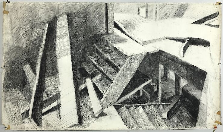 1974, conte crayon on paper, 36" x 62"