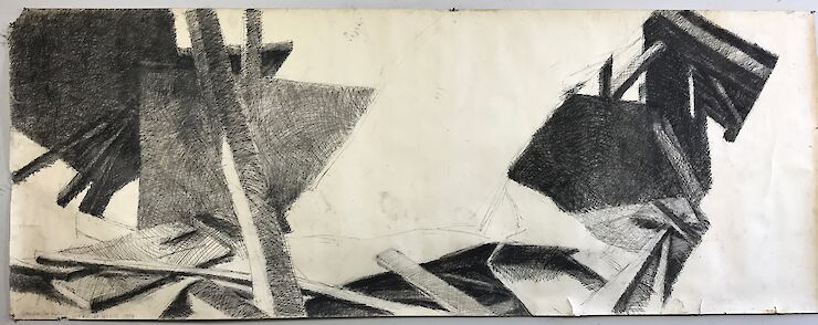 1974, conte crayon on paper, 42" x 93"