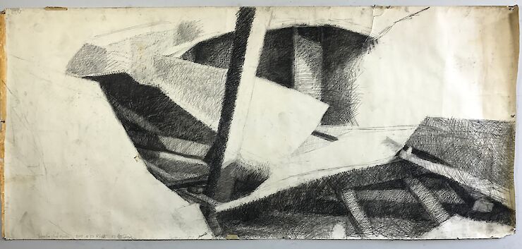 1974, conte crayon on paper, 42" x 101"