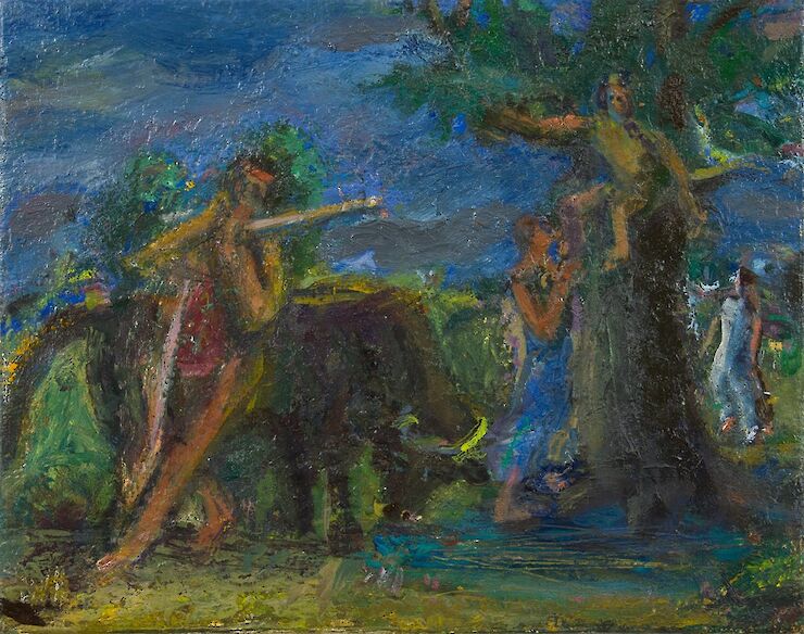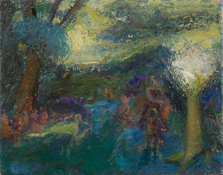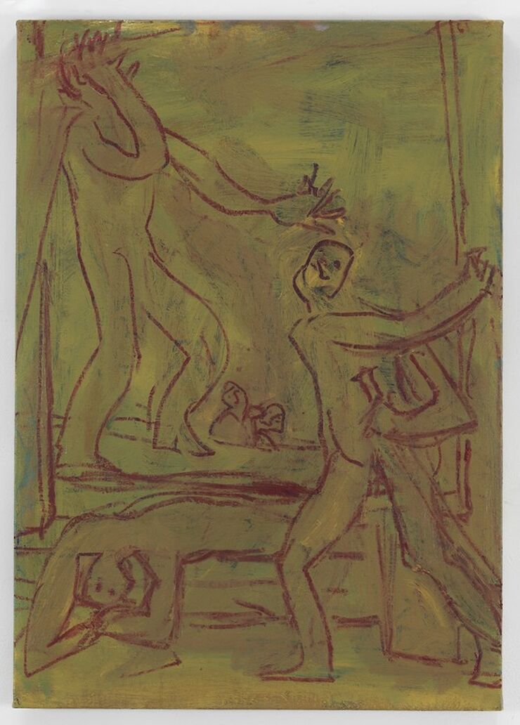 2007, yellow green wash on gessoed BFK, 17" x 13"
