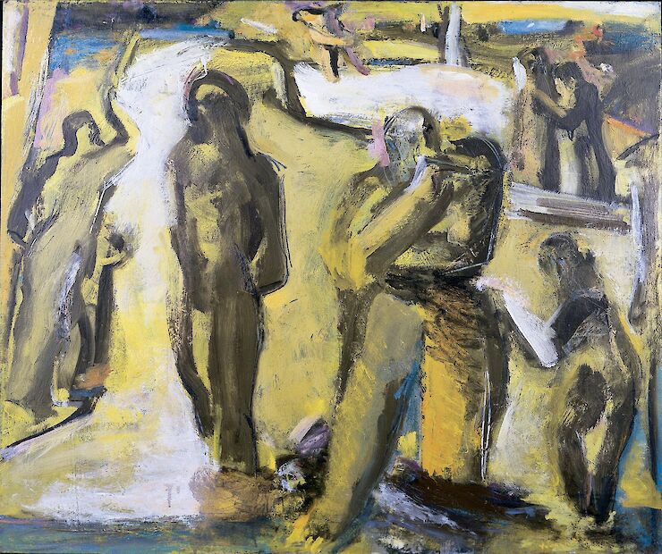 Choi Martin’s current body of paintings is based on T.S. Eliot’s The Waste Land. Published in 1922, the poem is cited as the summit of both Anglo-American poetry and the culture of high Modernism. More importantly in this case, it is employed by Younghee as a philosophy and methodology addressing the act of painting. She seeks a working analogy with Eliot’s ideas, rather than to simply illustrate his poetry. The Waste Land’s classical allusions and mythic references to Virgil’s Aeneid, or Wagner’s Tristan and Isolde, for example, translate into the artist’s complex figurative compositions based on an intimate knowledge of master paintings. In this pursuit, she has assimilated a broad range of figurative gestures from Titian, Poussin and others. Her creative process is closely related to looking and interpreting, as well as executing hundreds of drawings. Rather than relying on a neo-classical language bound by conservative academism, the artist’s repertoire depends upon an improvisatory impulse. These works are dictated by feeling and intuition rather than mere knowledge, retaining their openness and wealth of association.