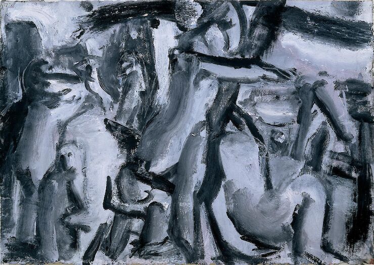 Examine the background of Thunder of Spring and notice the boats reminiscent of Raphael’s The Miraculous Draft of Fishes, 1514-15, or the gestures of Titian’s Bacchus and Ariadne, 1520-22. Placed into a generalized abstract structure, we no longer know what the narrative is. We merely hear its whisper. In this regard, openness is neither a simple function of form nor content, but the dynamic organizing principle stemming from the work’s inception.