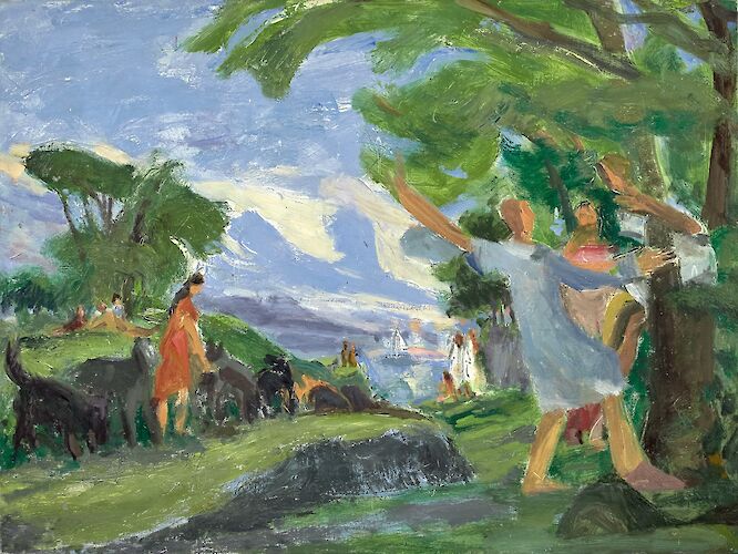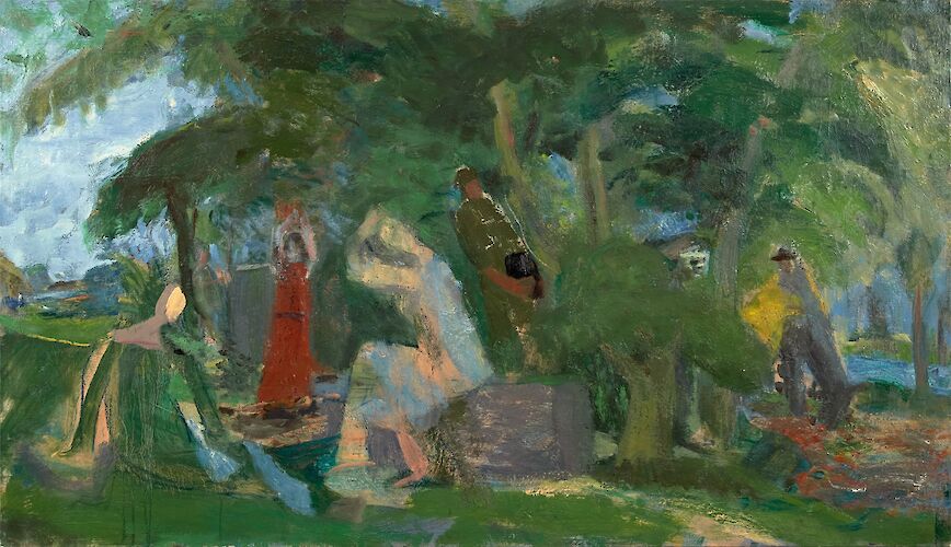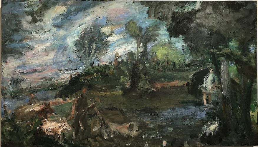 There is a reductive, modernist integration of the figurative and landscape elements in these works. The specific scenes are generalized to the point of abstraction and then pulled firmly back into the grand Poussineque tradition (from Reuben’s Flemish landscapes, to Cezanne's Bathers, with a serious nod to Eilshemius). Through the continual devel-opment of the paint, the surface, the composition, and the texture, the narrative is never lost. It breathes through the layers to slowly release a pictorial structure and a lyric dimension.