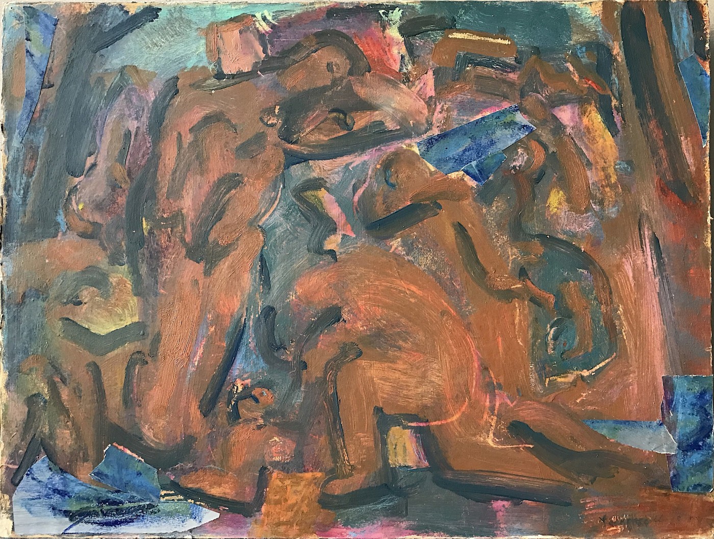 The most immediately striking element of Younghee’s s paintings is their color. She skillfully manipulates the illuminated atmosphere of each landscape to reveal drama. Her figures, deftly integrated into her landscapes as both symbol and material, emerge in the same way her compositions do, over time, organically. Her rhythmic drawing style continuously informs her painting process and creates a dynamic ambiguity between painted surface and illusionistic depth.